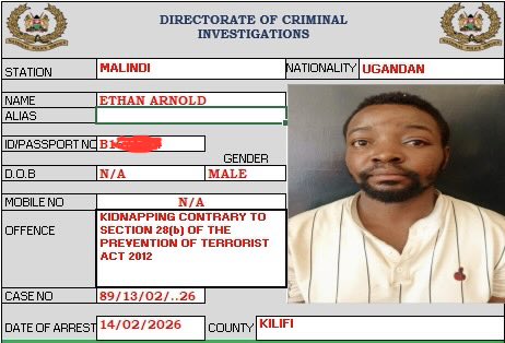 As for the suspect, he now finds himself behind bars at Malindi Police Station, where he is undergoing processing before being arraigned.