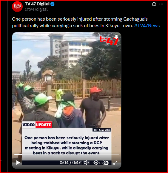 A dramatic and violent incident unfolded in Kikuyu after one person was seriously injured while attempting to disrupt a DCP rally headlined by former Deputy President Rigathi Gachagua and his allies.