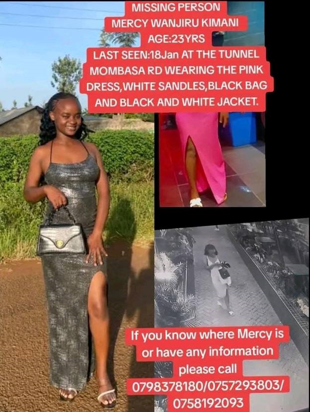 Mercy was last seen at Tunnel Club along Mombasa Road, where she had attended a birthday celebration.