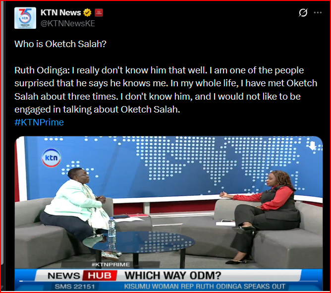 Speaking during an interview on KTN, Ruth expressed surprise at assertions that she has a close relationship with Salah, clarifying that their interactions have been minimal over the years.